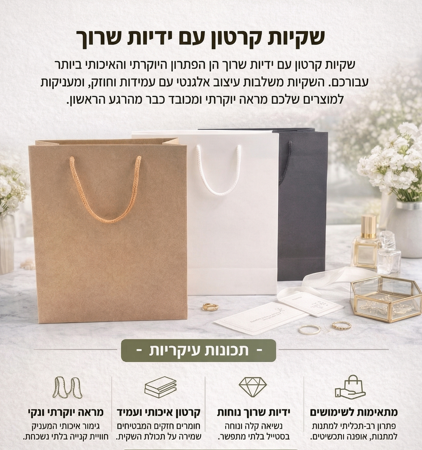 דף הבית » מוצרי אריזה וקופסאות מהודרות » שקיות נייר / קרטון /כותנה/ יוטה
