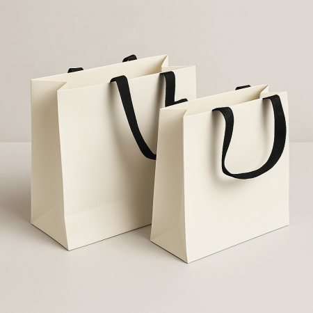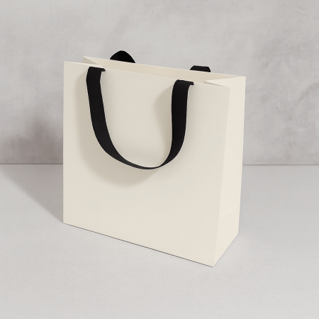 שקיות קרטון מהודר לבן ידיות ריבס שחורות